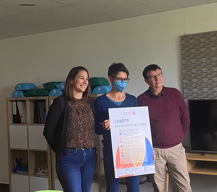 Valérie Rivoal, Christelle Lefloch et Eric Gauthier signant la charte Lieu de Santé Sans Tabac