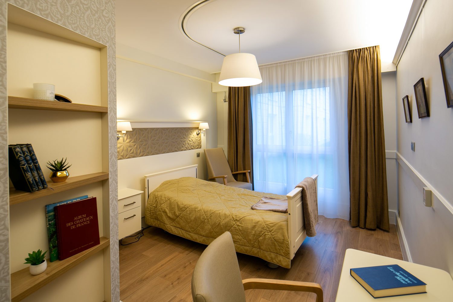 L’unité Jean Bart propose des chambres totalement rénovées dans un esprit contemporain. Des rails fixés au plafond favorisent la mobilisation sécurisée des résidents et facilitent l’ergonomie de travail des soignants. Une transformation si utile que la pose des rails se généralise aussi dans les autres établissements LNA Santé qui n’étaient pas déjà équipés.