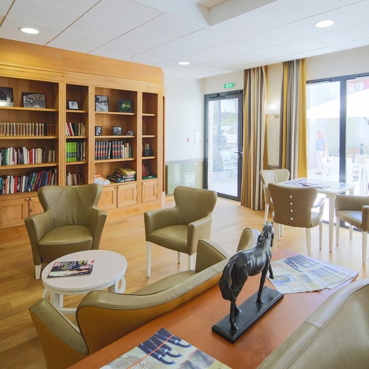 Notre maison de retraite médicalisée dans l’Aude offre des services hôteliers exigeants : une équipe dédiée s’occupe de l’entretien des chambres et des parties communes. Les résidents bénéficient d’un service de blanchisserie et de marquage du linge. Ils peuvent évoluer dans des espaces communs haut de gamme : bibliothèque, espace multimédia, jardin paysager, espace piano, etc.