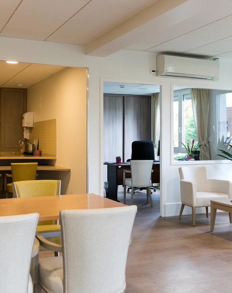 Les résidents en accueil temporaire sont hébergés dans une unité de vie à taille humaine gérée par une maîtresse de maison soignante-référente. Interlocutrice privilégiée des aidants et des familles, cette professionnelle expérimentée encadre les collaborateurs qui interviennent au sein de son unité de vie et veille au bien-être des résidents.