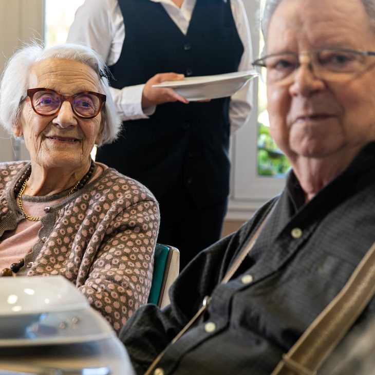 Le chef et sa brigade concoctent des repas savoureux, adaptés aux besoins des seniors. Ils sont servis dans l’un des restaurants de l’Ehpad, à l’exception du petit-déjeuner qui est proposé en chambre ou dans le salon de l’unité de vie. Un restaurant “invités” permet de partager des repas avec ses proches, il suffit de réserver son repas 48 à 72 heures à l’avance.