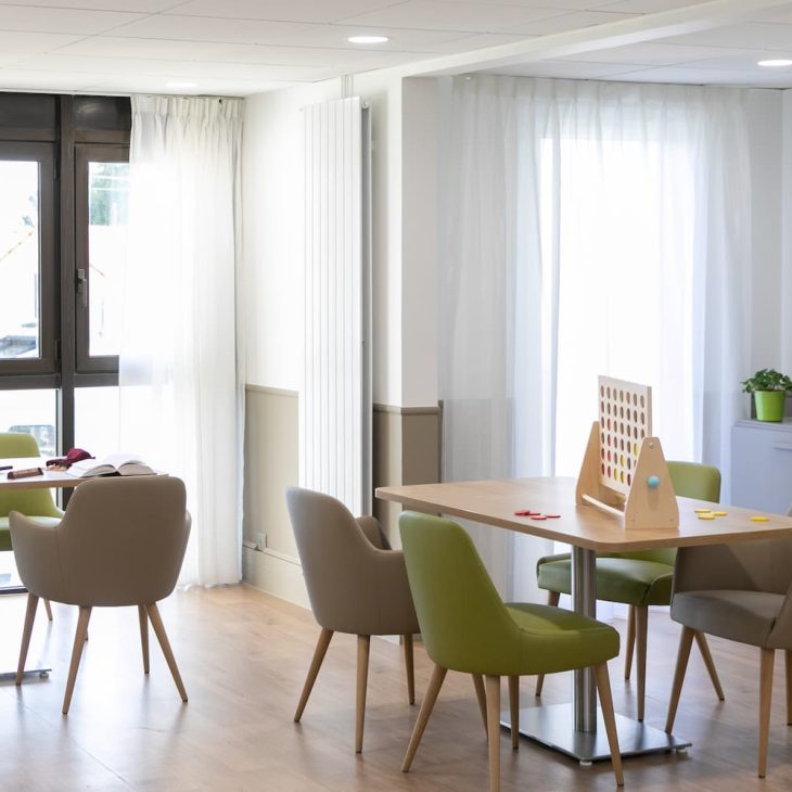Chacun de nos Ehpad en Seine-et-Marne est organisé en unités de vie. Elles sont au nombre de trois à cinq, en fonction des établissements. Chaque unité de vie est composée de 20 à 30 chambres et dispose d’espaces communs : salon pour recevoir les familles, kitchenette, terrasses… Chaque unité de vie dispose de sa propre équipe soignante et est managée par une maîtresse de maison soignante-référente, qui est également l’interlocutrice privilégiée des familles. Cette organisation offre aux seniors repères et sécurité, ils se sentent “comme à la maison”.